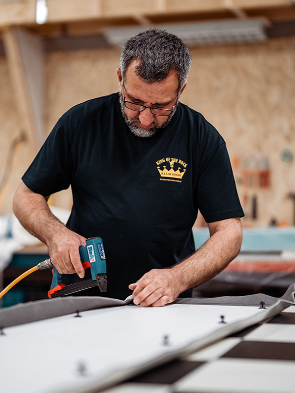 H.J.F de Koning is een van de grootste scheepsstoffeerderijen in Nederland. We staan bekend om het leveren van maatwerk en topkwaliteit aan particulieren, scheepswerven en exclusieve projecten. We werken met luxe (buiten)stoffen, leder en hoogwaardige basismaterialen. Het huidige team bestaat uit 12 specialisten met enthousiasme voor hun vak; de basis en het succes van ons bedrijf. Hier zijn we trots op!